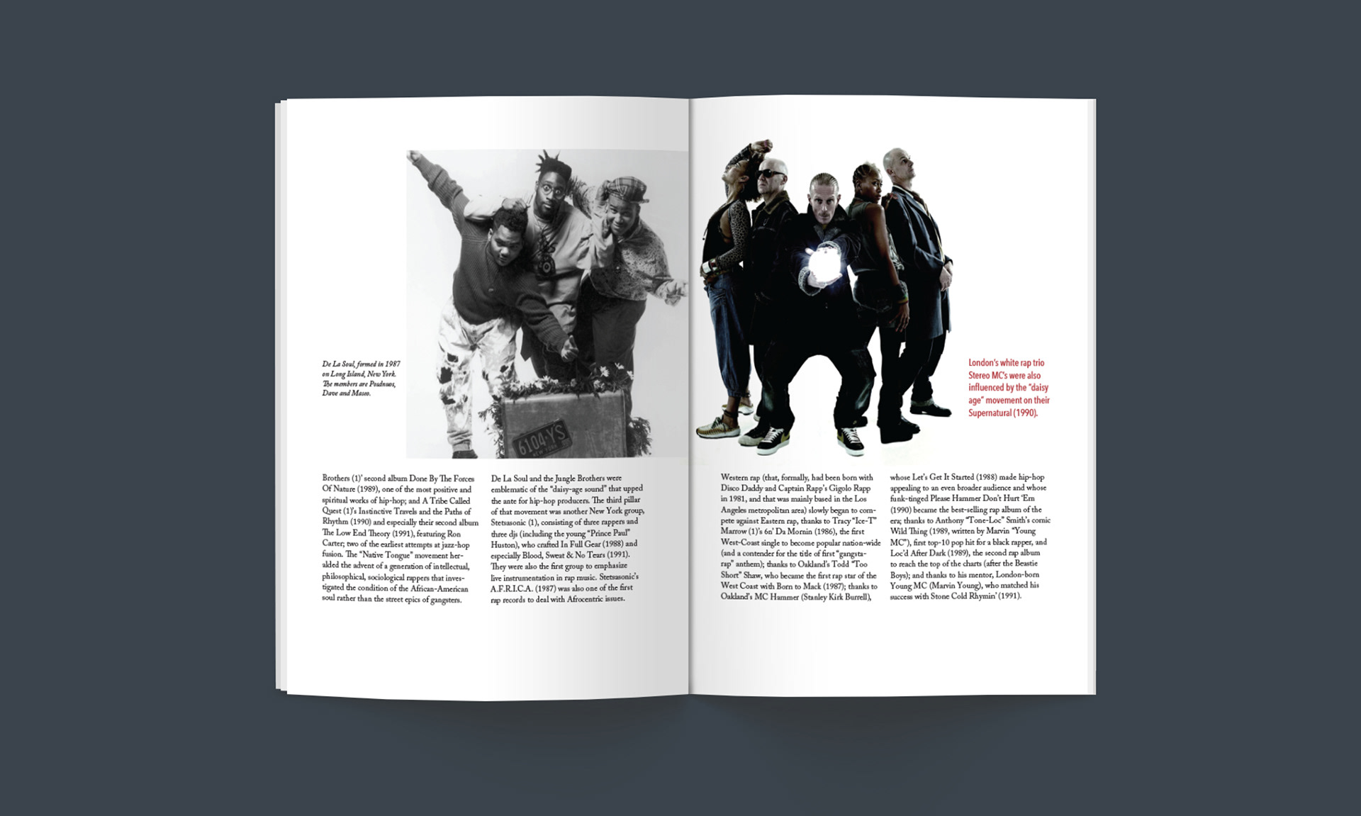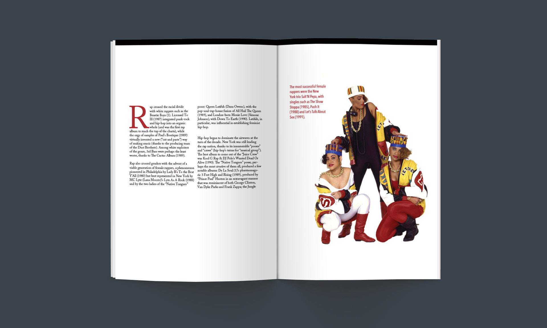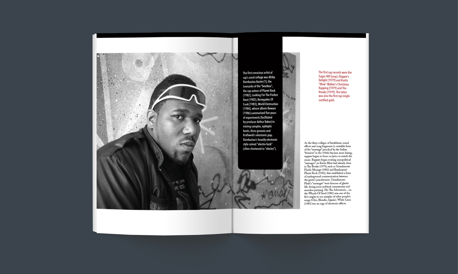 Layout design for a hip hop magazine featuring the history of this music genre.